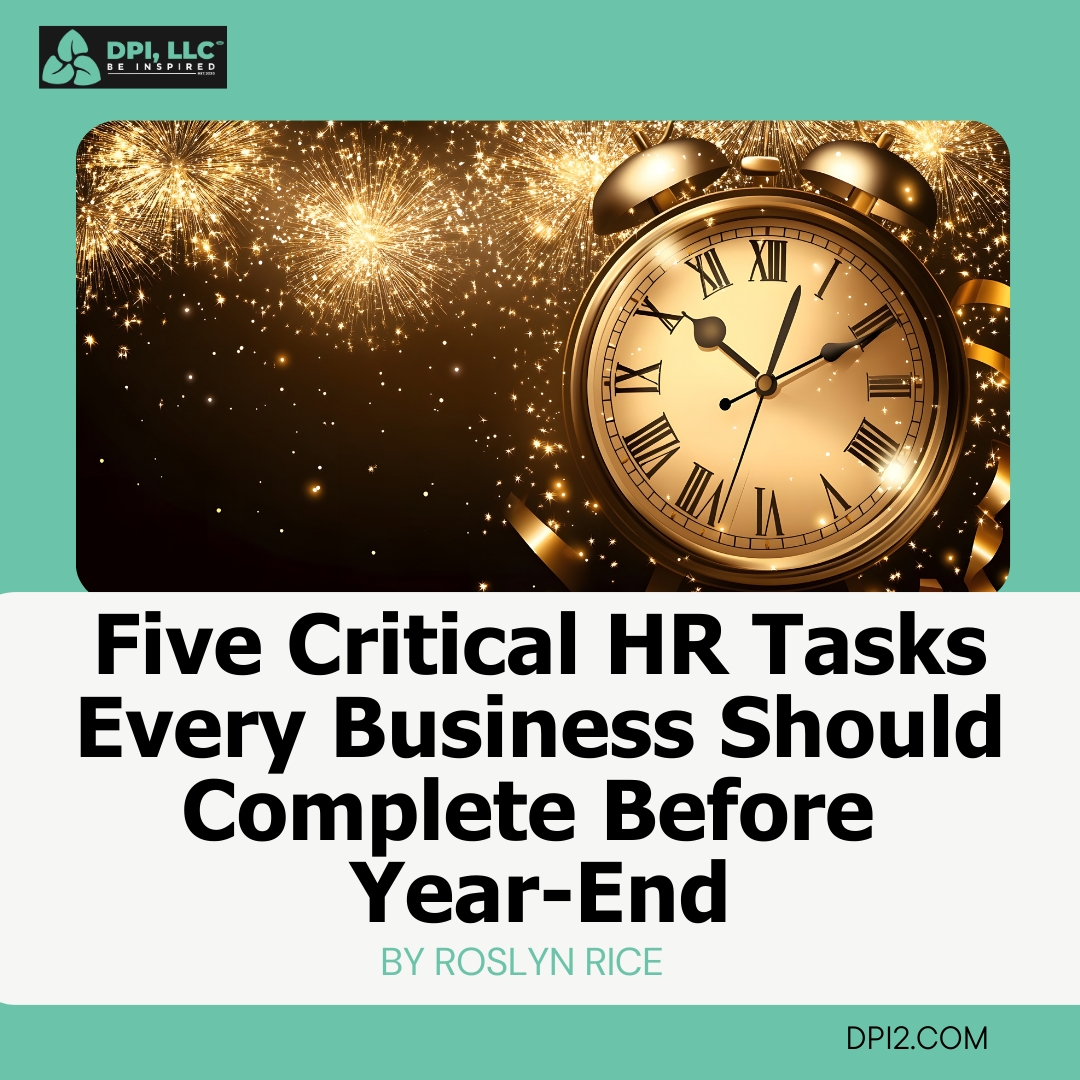 As 2025 winds down, business owners and HR leaders face a narrow window to tie up critical compliance and payroll processes before January arrives. A structured year-end review not only protects the organization but also strengthens readiness for the year ahead. At DPI, we believe in giving business owners clear, actionable steps that can be implemented quickly. This year’s HR priorities offer a meaningful opportunity to streamline operations. Below are the five most important HR tasks every organization should complete before the end of the year, based on the enclosed checklist resource. These actions support compliance, reduce risk, and ensure your team enters the new year with clarity and confidence. You can also provided a HR Checklist to ensure you stay on track. 1. Conduct a Comprehensive Compliance Review Before closing 2025, verify that all federal, state, and local labor requirements are up to date. This includes reviewing policies, updating required labor law postings, completing necessary employee notices, and confirming all workplace trainings have been completed. Compliance gaps discovered late often become costly mistakes—this review is a proactive safeguard. 2. Audit Personnel Files and Recordkeeping Take time to ensure personnel files are complete, accurate, and properly stored. Transfer terminated employee files to secure storage and confirm record retention requirements have been met. Clean files support clean audits. 3. Finalize Payroll, Taxes, and Year-End Reporting Audit payroll balances, confirm employee data, and prepare year-end forms such as W-2s and 1099s. Review carryover balances for PTO, schedule bonuses, and verify all tax information is correct before submissions begin in January. Even for employees that have separated from the company, you want to make sure you have an accurate mailing address to provide them with documents for their tax return filing. 4. Review Employee Benefits and Compliance Deadlines Assess benefits offerings, confirm ACA reporting requirements, verify eligibility lists, and distribute required notices. This is also the ideal time to evaluate whether your benefits remain competitive. 5. Complete Annual Performance Reviews and Update Job Descriptions Formal reviews reinforce expectations and help shape professional development for the year ahead. This is also the right time to update job descriptions to reflect actual responsibilities and evolving business needs. The DPI team has tools to support this year end task. An organized year-end HR process strengthens operational efficiency and reduces risk. If you’d like help implementing these steps, our team at DPI is ready to assist. The HR Checklist is our gift to you this holiday.